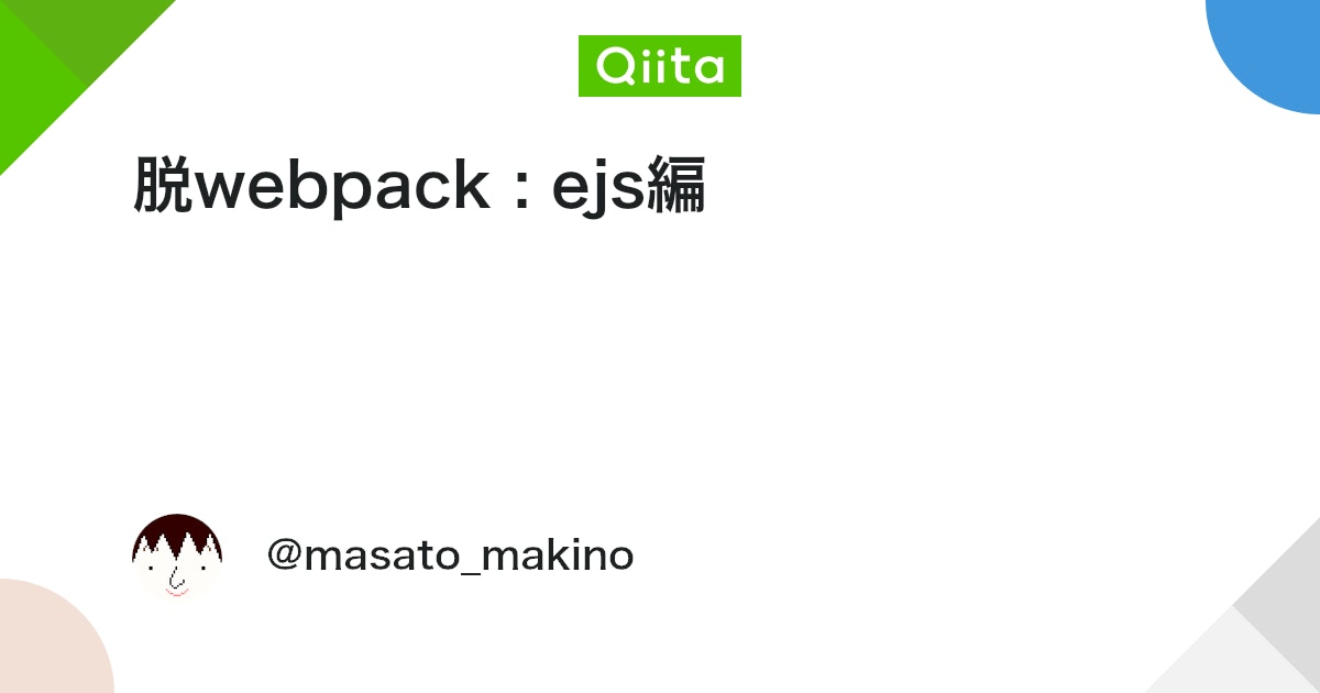 はじめに 現在フロントエンド開発環境のうち、一部のwebpack依存処理をnode.jsスクリプトに置き換えています。 本記事はその結果のうち、ejsをnode.jsスクリプトで変換する方法を共有するためのものです。 ejsとは ejsは、...